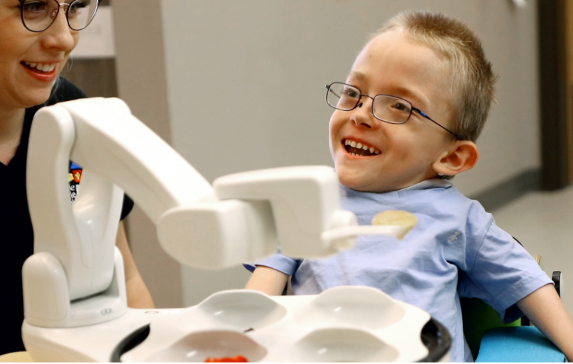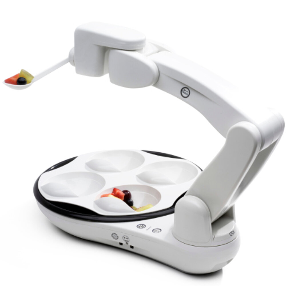 Obi est une aide révolutionnaire à l'alimentation qui permet aux personnes ayant une mobilité réduite ou nulle des membres supérieurs de vivre une expérience alimentaire agréable et digne. Grâce au contrôle de l'utilisateur sur le choix des aliments et la vitesse d'alimentation, les repas redeviennent un plaisir et non une corvée. Obi est facile à utiliser, portable et idéal pour la maison ou les déplacements, par exemple au restaurant. Après un simple processus d'apprentissage, les quatre bols sont prêts pour différents repas. Le design moderne et le mouvement réaliste ont un effet positif sur les utilisateurs, les familles, les amis et les soignants. Obi se distingue par sa personnalité subtile et est facile à nettoyer. Il est prêt à l'emploi en quelques secondes, dispose d'un système de détection des collisions pour la sécurité des utilisateurs et est portable.