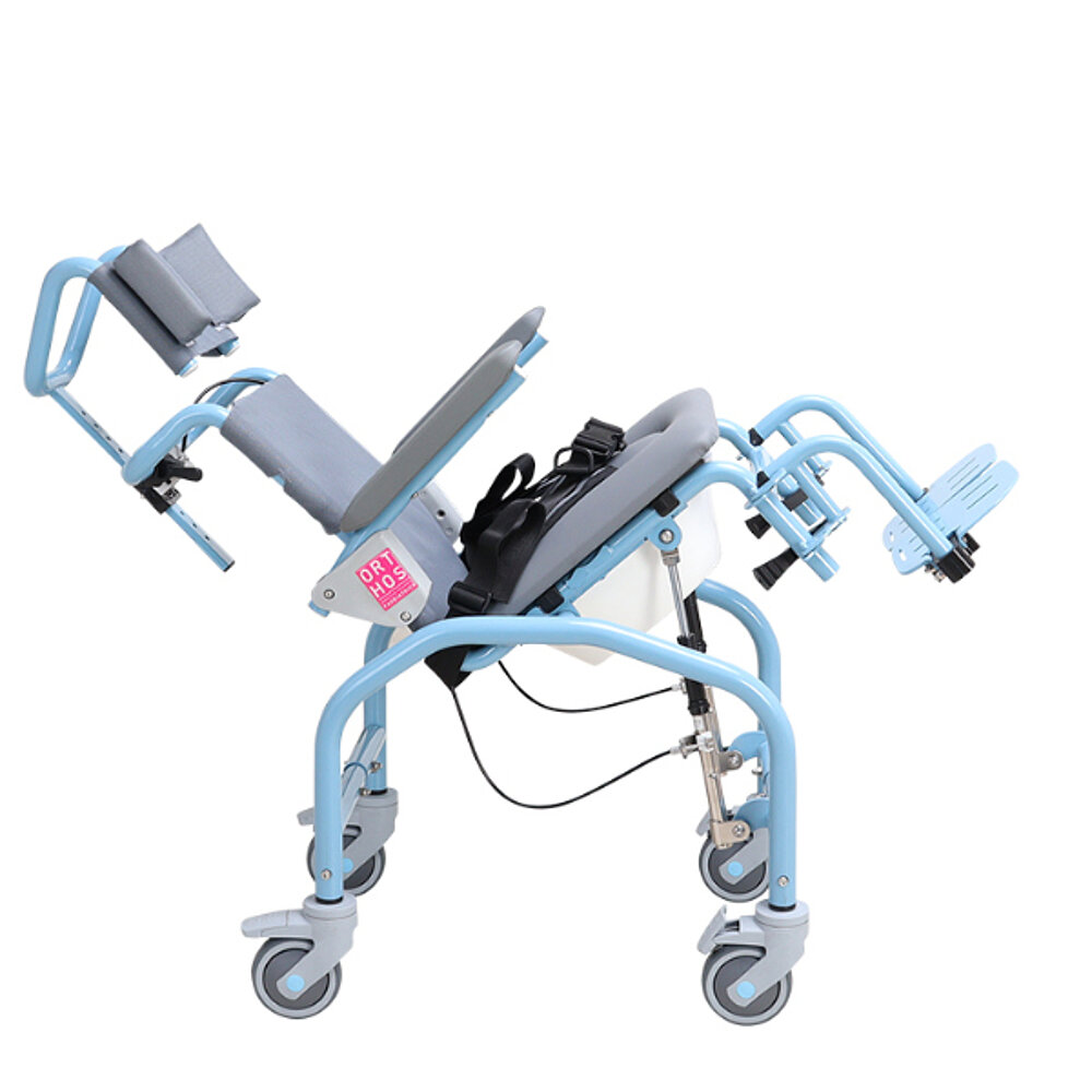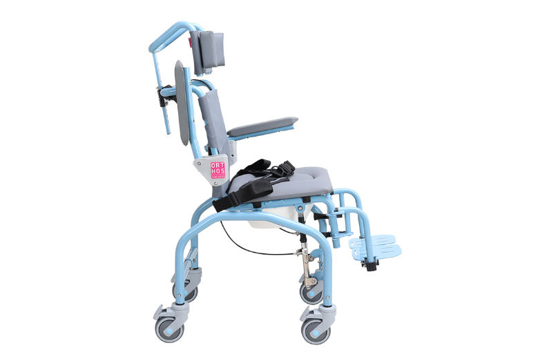 Cette chaise de douche et de toilette en acier inoxydable est idéale pour les enfants ayant des difficultés motrices. Elle offre une plage d'inclinaison de 5º à 40º, avec un appui-tête réglable et des cales rembourrées, une housse imperméable et un siège élastique avec ouverture et couvercle. L'équipement comprend une ceinture abdominale à deux points et un châssis réglable en hauteur sur 100 mm. La chaise est disponible dans les tailles 31, 34 et 37 et dispose d'accoudoirs et de repose-pieds rabattables, également réglables. Il est en outre équipé de roues de 100 mm avec freins et est fabriqué avec des matériaux qui résistent au nettoyage et à la désinfection.
