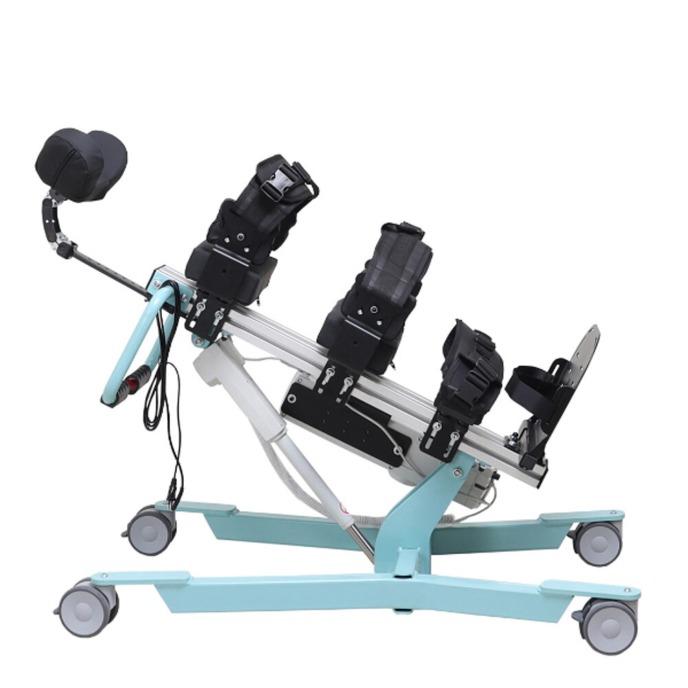 La table basculante multi-positions permet de régler la position de l'utilisateur de l'horizontale à la verticale. Il s'agit d'un modèle pour la position dorsale. La commande est électrique ou pneumatique.