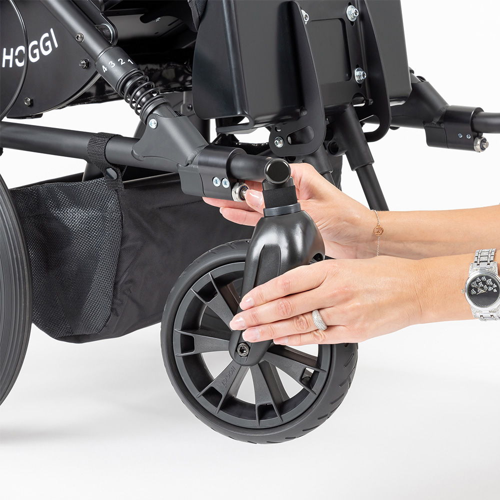 La nouvelle BINGO SWITCH est une poussette de rééducation qui permet de passer en un tour de main d'une poussette adaptée à la ville à une variante tout-terrain pour l'extérieur. Grâce à sa connexion Quick-Release innovante et stable, l'échange des roues avant est un jeu d'enfant. Elle convainc par toutes les caractéristiques techniques de la BINGO Evolution qui a fait ses preuves.