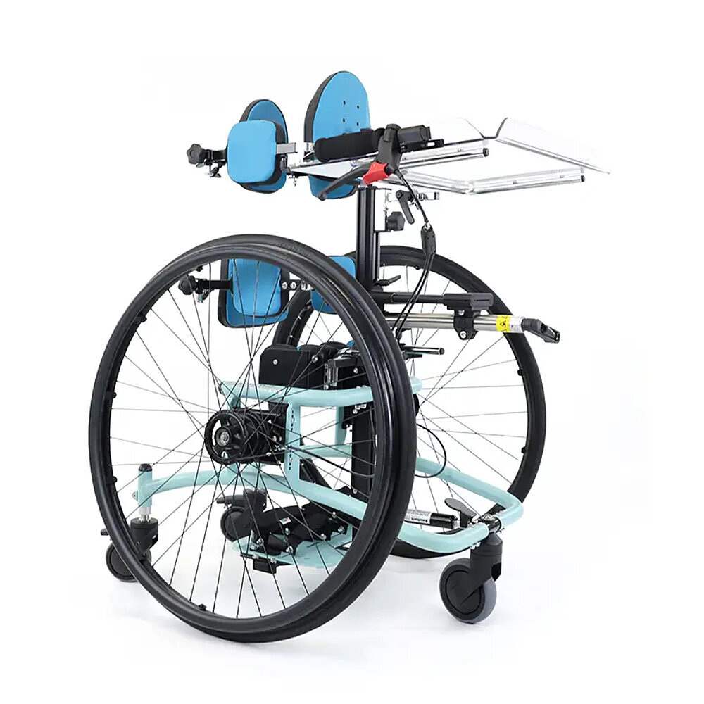 Le Boogie Drive est un appareil mobile de verticalisation évolutif qui soutient le concept thérapeutique de la mobilité (de la petite enfance) en position verticale. Il est basé sur la méthode des trois points, qui permet de solliciter l'ensemble du squelette et de la musculature avec précaution et de manière contrôlée. Grâce au Boogie Drive, même les muscles inactifs sont activés, sollicités et stimulés.
