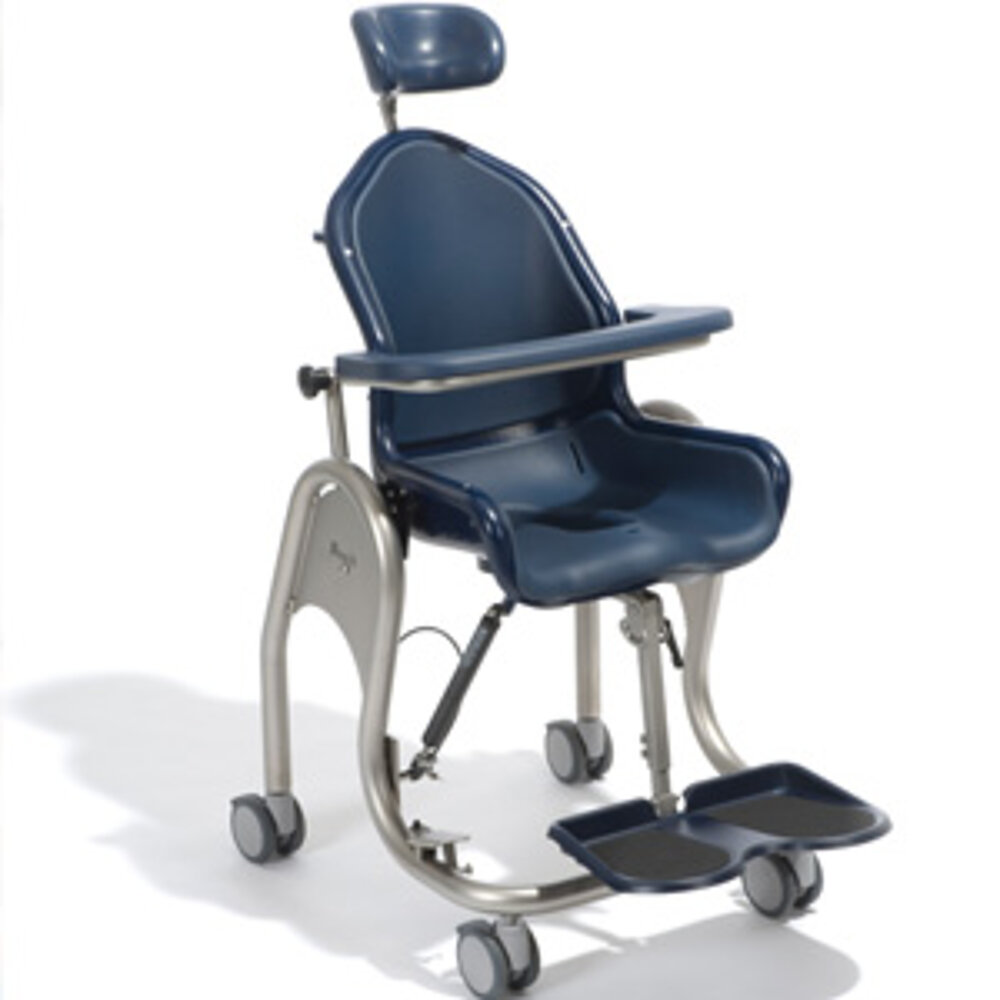 La chaise de douche et de toilette confortable dispose d'une coque d'assise de forme anatomique qui offre un soutien au niveau du bassin et stabilise le haut du corps. Le piètement robuste est en acier inoxydable pour une longue durée de vie. La chaise offre de nombreuses possibilités de réglage, car la coque d'assise peut être modifiée en continu de (-)5° à 30° à l'aide d'une pédale. Des coussins d'assise intégrés assurent un confort d'assise supplémentaire et évitent les points de pression sur le corps. Un rembourrage d'assise amovible est disponible en option. Le repose-pieds peut être relevé pour faciliter la montée et la descente du fauteuil. Une tablette avec accoudoir rembourré et accoudoirs pivotants améliore le confort et la stabilité. L'appui-tête peut être réglé en hauteur et en angle pour répondre aux besoins individuels. La chaise offre également un aménagement de toilettes et peut être utilisée comme chaise de toilette indépendamment d'un WC. Une ouverture hygiénique plus grande est disponible dans les tailles 2-4.
