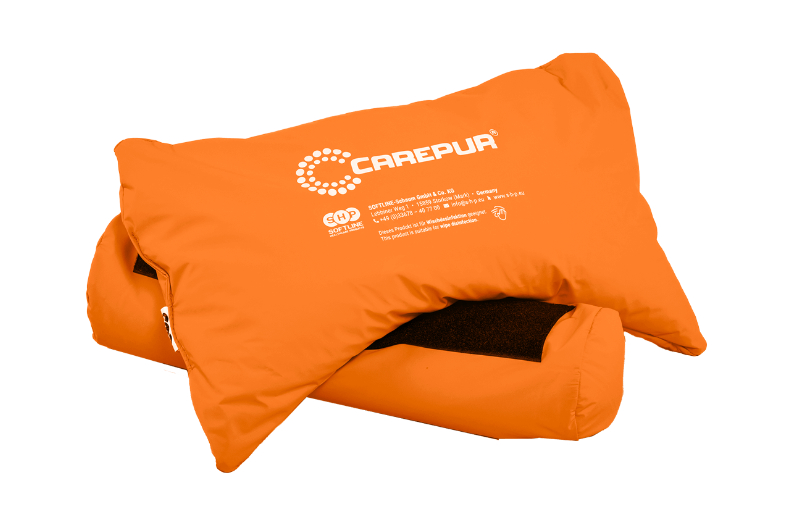 Le coussin pour bras hémi CAREPUR est un coussin en deux parties, utilisable des deux côtés, pour le positionnement souple et la stabilisation d'un bras hémiparétique en position assise, en particulier en fauteuil roulant. Il se compose d'une base de coussin cylindrique et d'un support de bras rectangulaire qui sont reliés entre eux par une fermeture velcro. Le coussin soulage l'avant-bras, stabilise la position et réduit les forces de traction dans l'articulation de l'épaule.