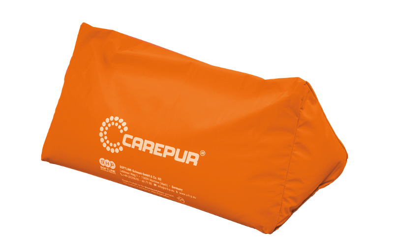 Le coussin delta CAREPUR, en forme de prisme, est principalement utilisé pour le positionnement latéral à 30°. Il soutient de manière ciblée les épaules, le dos ou le bassin et offre un positionnement stable grâce à sa large face inférieure et son enveloppe antidérapante. En outre, en position dorsale, il convient au soutien de la flexion des genoux, à la prophylaxie des pieds pointus ou à la position à 135°. En position assise, il peut servir de support pour un bras hémiparétique.