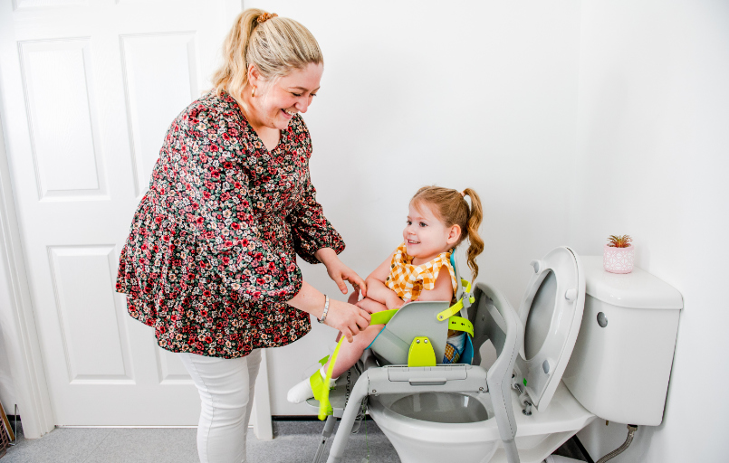 Dieser sehr kompakte Toilettenstuhl wird bei uns als Nachfolger für das zu klein gewordene Töpfchen (mit Rücken- und Armlehne) seit einigen Tagen genutzt und war sogar schon mit im Urlaub. Die Sitzposition war anfangs noch ungewohnt, führte dann aber doch zum Erfolg. Die Laschen für die Füße sind sehr schwer zu lösen und wieder zu befestigen. Daher haben wir sie so weit eingestellt, dass die Füße leicht positioniert und wieder befreit werden können, ohne den Gurt lösen zu müssen. Die Hauptsicherung erfolgt über den Bauchgurt. Dieser ist sehr leicht zu fixieren und zu lösen.