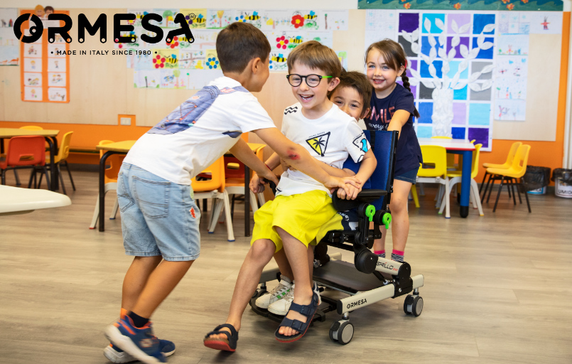 Chaise ergonomique et maniable pour les enfants ayant des besoins spécifiques.