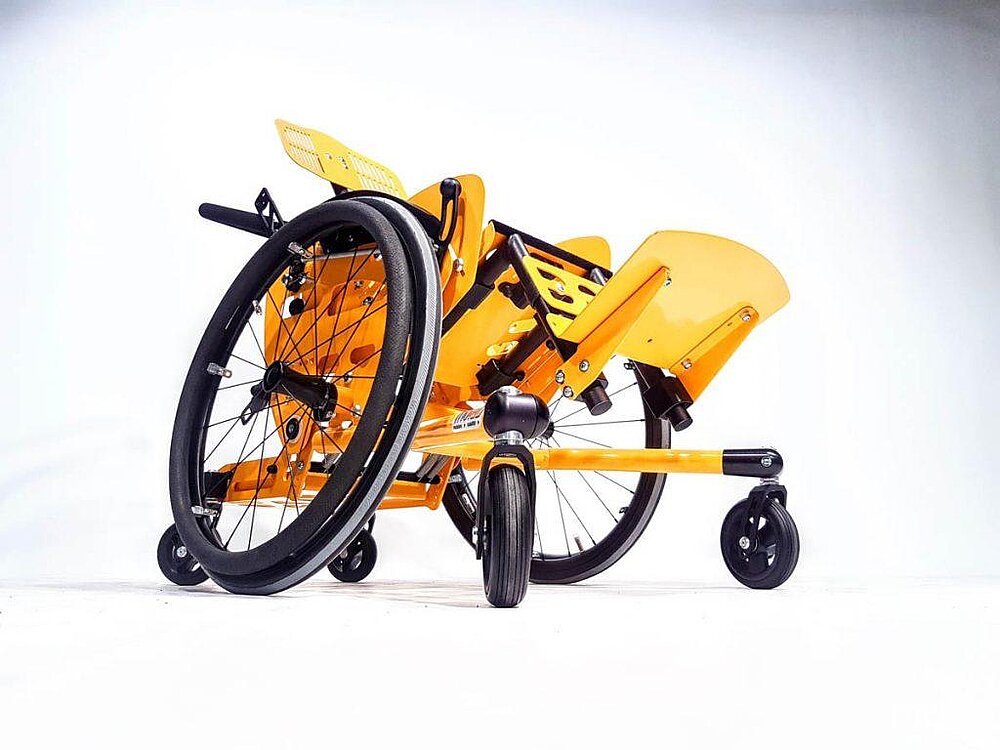 Le CHILLIE est un fauteuil roulant adaptatif pliable avec une unité d'assise pivotante pour les enfants et les adolescents qui se déplacent activement.
