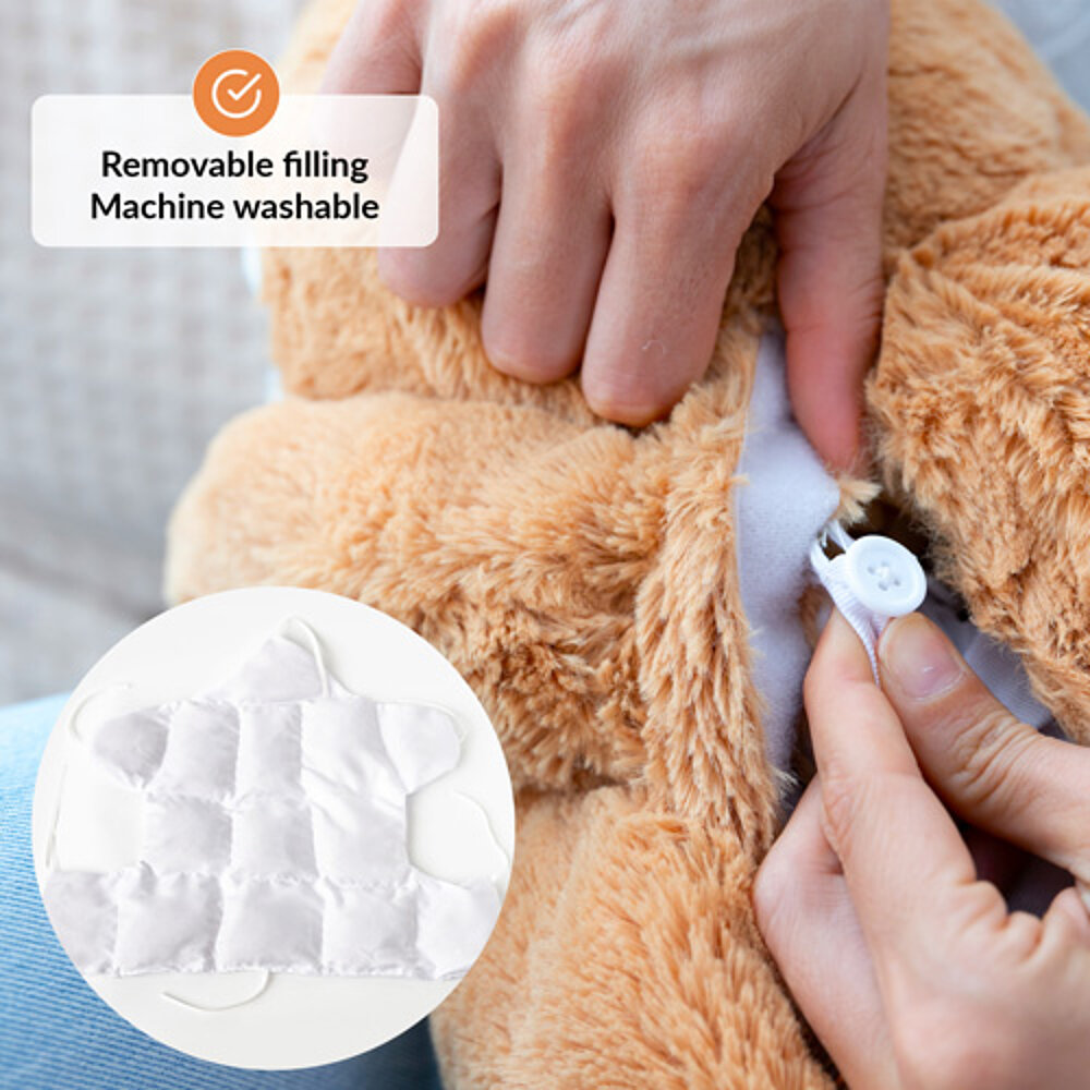 L'animal en peluche est facile à emporter partout grâce au sac de transport fourni. Encore mieux : le rembourrage dans le doudou peut être retiré et facilement nettoyé après des heures d'utilisation !