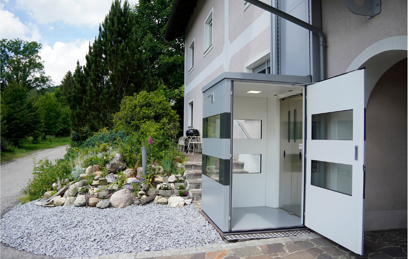 L'ascenseur à cabine QuattroPorte relie élégamment tous les étages de votre bâtiment - sans aucune gaine et avec une intervention minimale sur la structure du bâtiment. Son design moderne et adaptable s'intègre parfaitement dans n'importe quel environnement. L'espace sous la cabine reste entièrement utilisable, par exemple comme entrée de garage ou trottoir. Le Homelift offre suffisamment d'espace pour le transport d'aspirateurs, de paniers à linge ou de grands sacs. Profitez du confort de ne plus jamais devoir porter de lourdes charges dans les escaliers. Le QuattroPorte assure l'accessibilité et s'intègre aussi bien à l'intérieur qu'à l'extérieur - idéal aussi pour les personnes handicapées.