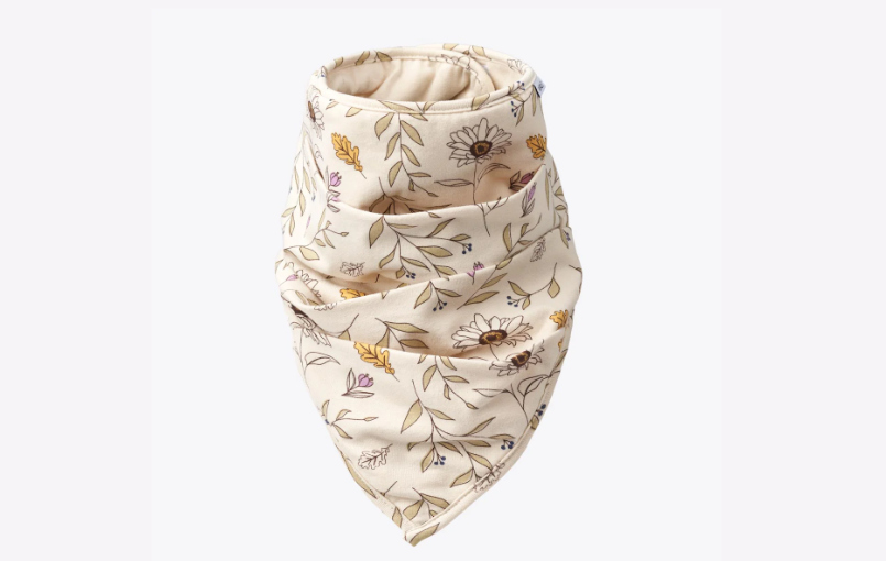 FAVNE est un bavoir pratique et stylé qui ressemble à une écharpe et en a le toucher. Disponible en deux couleurs à la mode avec des imprimés all-over, il est fabriqué en coton biologique naturel.