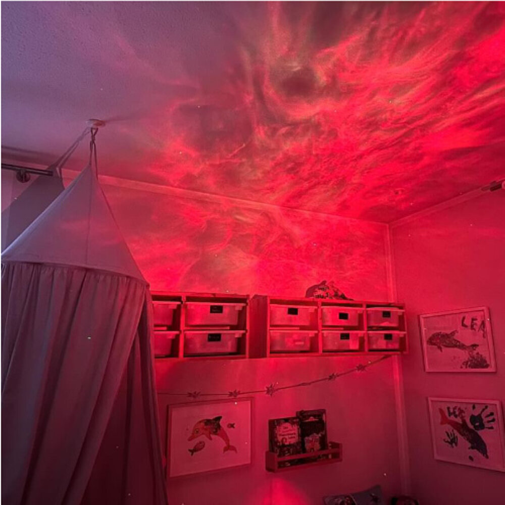 Plongez la chambre d'enfant dans l'univers grâce au projecteur de lumière ! Il fait apparaître comme par magie un ciel étoilé scintillant sur les murs et fascine chaque enfant, soir après soir ! Utilise la télécommande pour contrôler le projecteur et choisis parmi sept couleurs différentes. Grâce à la minuterie, tu peux facilement déterminer quand la lampe s'éteint automatiquement. Vis des moments magiques et jette un coup d'œil dans l'immensité de l'espace !