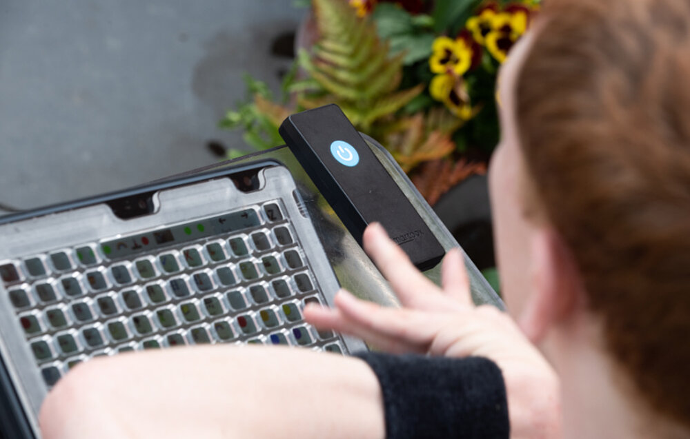 La commande du Grid Pad 10s est possible de différentes manières : outre la commande tactile avec des grilles de guidage des doigts en option, il est possible de connecter des boutons externes ou, par exemple, un joystick ou une souris.