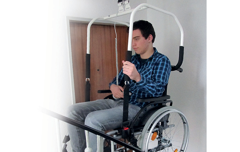 Le Heymer Trio est un système d'élévation au plafond dans les escaliers qui permet à une personne en fauteuil roulant de se déplacer de manière autonome dans les escaliers.