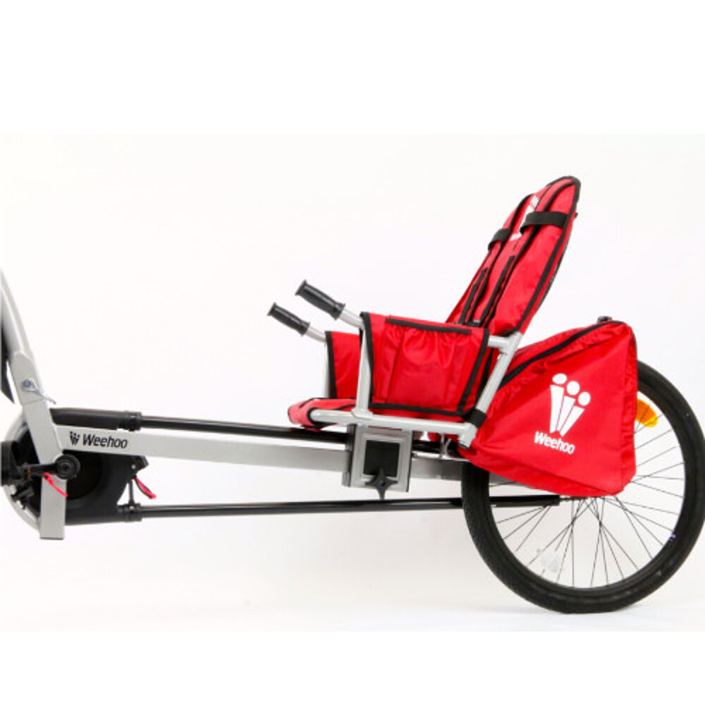 Vor kurzem haben wir für unsere 6 jährige Tochter WeeHoo Igo Turbo Anhänger gekauft. Bis jetzt sind wir super zufrieden.Der Trailer ist ziemlich schmall, passt gut für die Stadt genauso wie für den Waldweg.Hanna kann auch mittreten und Mama helfen wenn sie Lust hat.Der Preiss (rund 400Euro) hat auch gestimmt. WeeHoo ist kein spezieller Reha Anhänger sonder ein ganz normaler Anhänger für Kinder bis 30 kg.