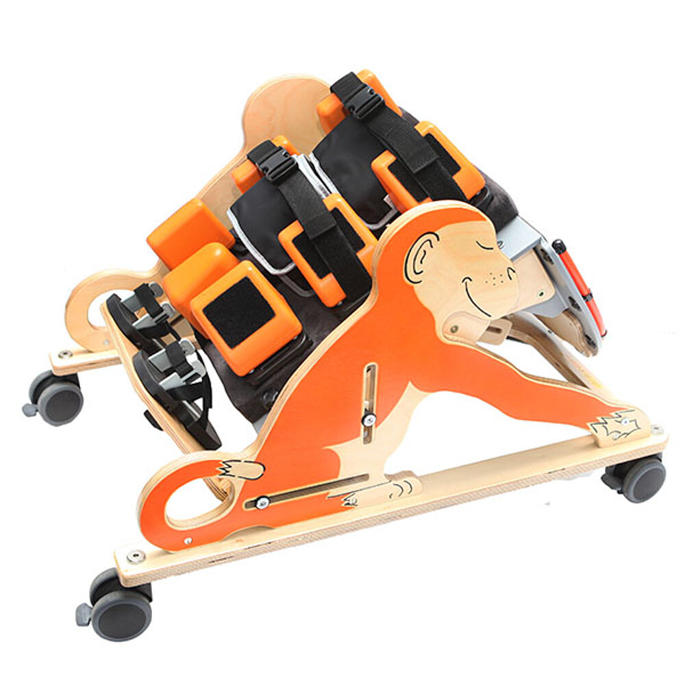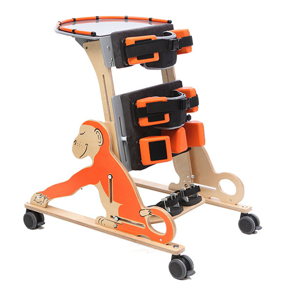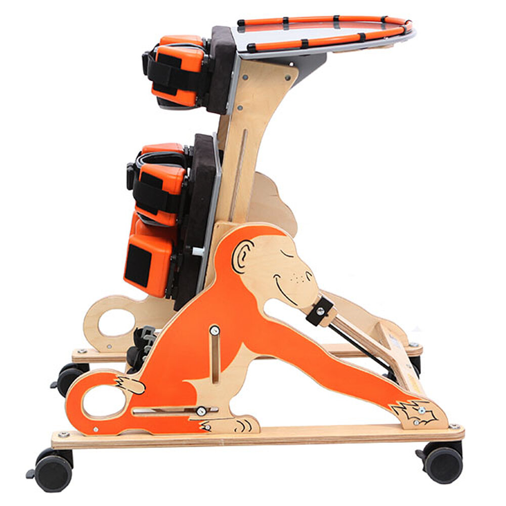 Le Monkey a été spécialement conçu pour les jeunes enfants et constitue depuis plus de 25 ans une introduction idéale, ludique et douce à la station debout. Son inclinaison est réglable en continu et facilement et il peut passer d'une position droite à 90° à une position ventrale à 20° - parfait pour développer progressivement la position debout dans le cadre d'un programme thérapeutique. L'excellent soutien de la cage thoracique et du bassin, associé au positionnement flexible des jambes, font du Monkey une excellente option pour presque tous les enfants.