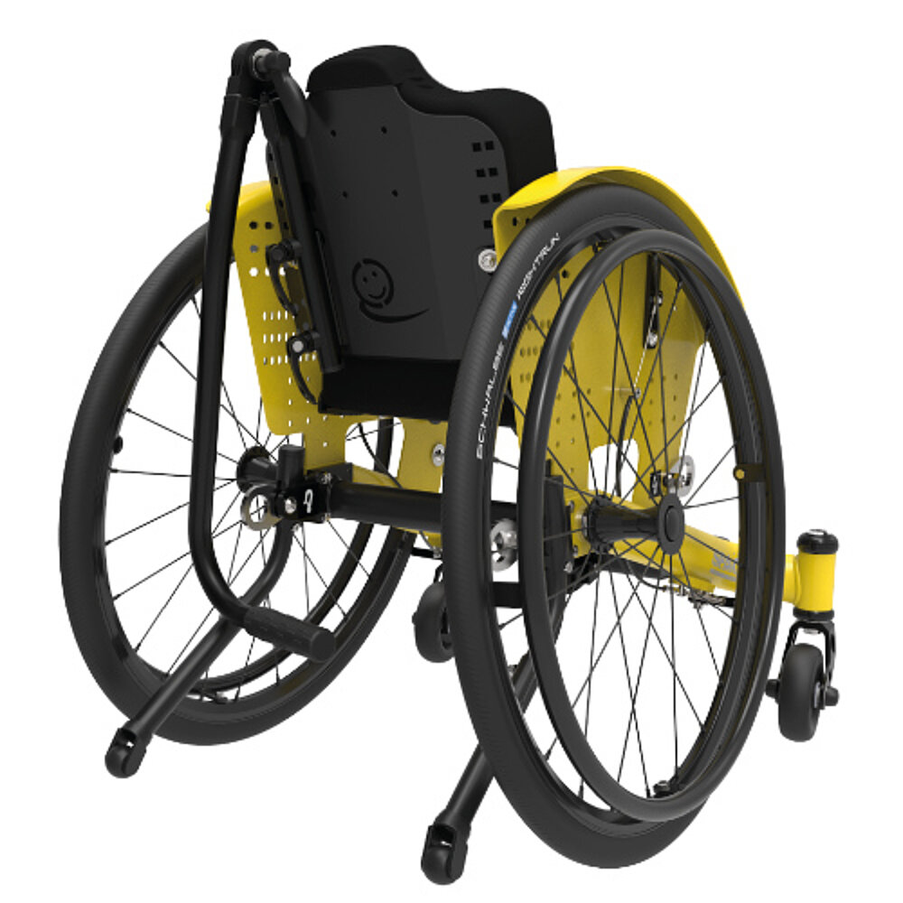 Le kidevo mini est un fauteuil roulant léger et dynamique pour enfants, fabriqué individuellement selon les mesures de l'enfant. La largeur, la hauteur et la profondeur de l'assise s'adaptent à la croissance de l'enfant.