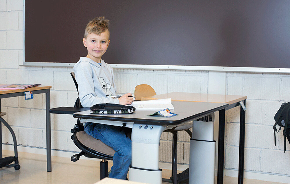 Le siège réglable en hauteur et inclinable favorise une position assise droite et active. Le siège-selle ergonomique favorise une posture naturelle, stabilise le bassin et peut influencer positivement le tonus musculaire et la mobilité. Disponible en trois tailles pour une adaptation optimale à la croissance.