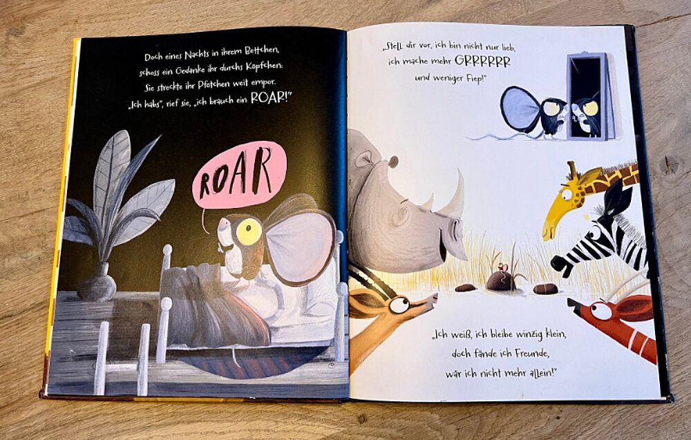Être petit n'est pas toujours facile. Qui pourrait le savoir mieux que la souris ? On se fait oublier, on passe inaperçu et on se fait bousculer. Si seulement elle pouvait rugir comme le lion, cela ne lui arriverait plus ! Elle rassemble tout son courage et décide d'aller voir le puissant lion. Car qui pourrait mieux lui apprendre à rugir que le lion ? Au terme de son voyage aventureux, la souris fait une découverte : il n'est pas nécessaire d'être grand et fort pour surmonter ses peurs.