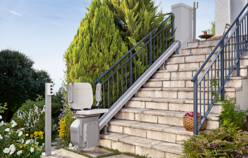 Le Lifta GTL 320 tout temps permet de franchir sans problème les marches d'escalier devant votre maison, dans le jardin ou vers la terrasse. L'humidité rend rapidement les marches humides et glissantes, ce qui augmente le risque de chute. Un monte-escalier d'extérieur permet de monter et de descendre en toute sécurité et confortablement. Nos experts installent le monte-escalier extérieur de manière fiable et rapide sur l'escalier, de la même manière qu'un monte-escalier pour l'intérieur. Les rails sont spécialement adaptés à vos exigences individuelles et fabriqués sur mesure pour répondre aux conditions de construction. Ainsi, le Lifta GTL 320 tout temps peut être installé sur presque tous les escaliers droits.
