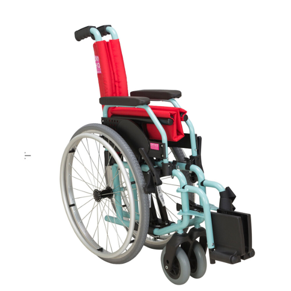 Il est possible de choisir entre des roues arrière de 550 mm (pleines ou pneumatiques au choix) combinées à des roues avant pleines de 150 mm. Un modèle Transit avec des roues arrière de 300 mm est également disponible, idéal pour les enfants qui ne peuvent pas propulser le fauteuil roulant de manière autonome. Le fauteuil roulant est conçu pour un poids maximal d'utilisateur de 125 kg et convient parfaitement aux enfants à mobilité réduite.