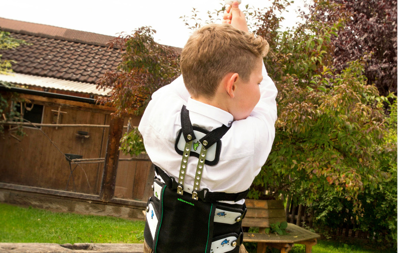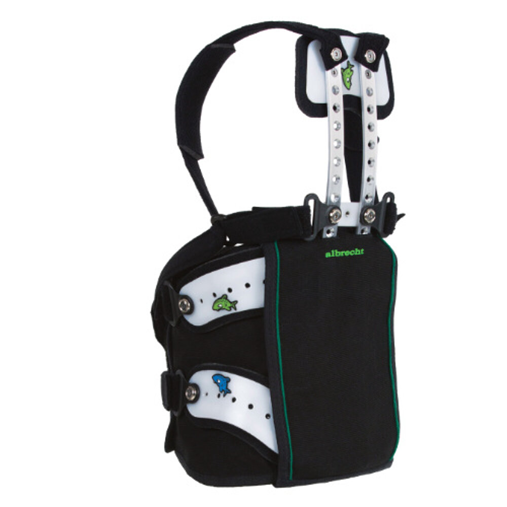 Cette orthèse destinée à soulager et à corriger la colonne vertébrale lombaire et thoracique dans les plans sagittal et frontal offre une fonction de mobilisation grâce à l'option de mise en place et de retrait. L'orthèse Lumbo forte plus de MKS® est basée sur le principe efficace de la reclinaison et du pontage. Les deux bretelles fixées à la plaque dorsale assurent un redressement de la colonne vertébrale et soulagent ainsi la colonne thoracique. La partie large et haute du corps de l'orthèse, associée aux sangles latérales, provoque une désordonnance de la colonne lombaire et soulage ainsi cette zone. L'association des sangles de reclinaison et des sangles latérales supplémentaires sur la partie abdominale permet de limiter la rotation.