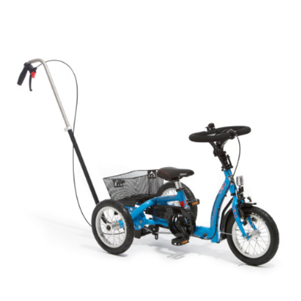 Wir haben es auch mit einer Schiebe und Lenkstange hinten, welche auch abmontiert werden kann, und lieben es, wie einfach es sich fahren lässt.
