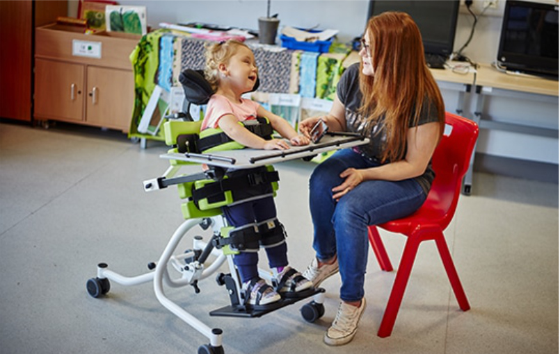 Un système de verticalisation extrêmement polyvalent qui offre un positionnement 3 en 1 à la fois en position debout neutre et en position debout abaissée pour les enfants ayant des besoins modérés à complexes d'environ 9 mois à 6 ans.