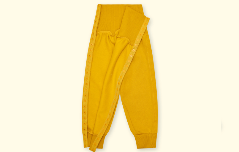 La culotte entièrement déboutonnable sur le côté est la solution idéale pour les enfants ayant une jambe cassée, une prothèse, une orthèse ou pendant un séjour prolongé à l'hôpital. Grâce à son design bien pensé, elle permet de l'enfiler et de l'enlever facilement, sans pour autant solliciter la jambe blessée. Le boutonnage latéral offre un accès pratique et facilite les soins et le traitement de la zone concernée. Ton enfant peut ainsi se sentir habillé de manière confortable et pratique pendant sa convalescence.