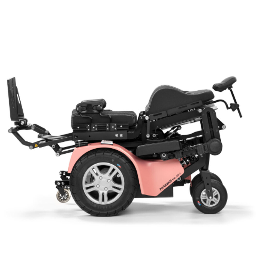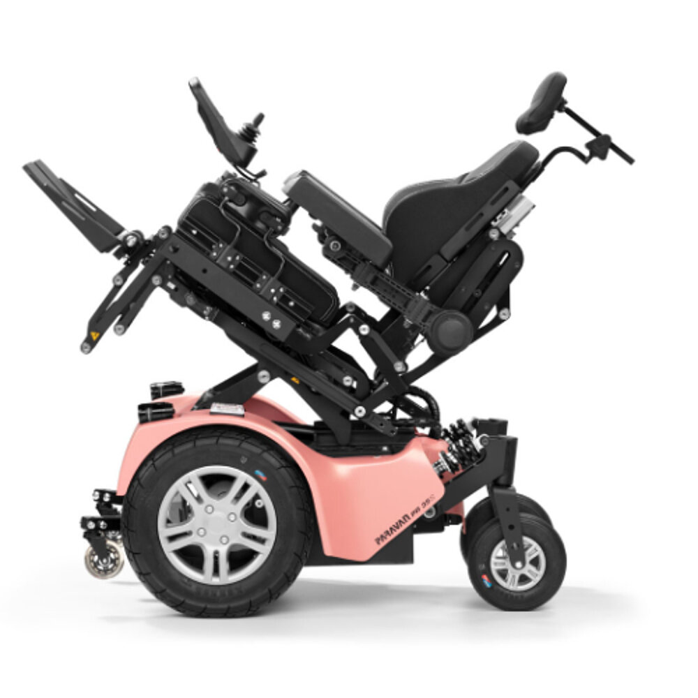 Le PR 35 est un fauteuil roulant électrique évolutif pour enfants, équipé d'un essieu arrière à suspension et de nombreuses possibilités de réglage. Le PR 35 S offre en plus une fonction debout et une fonction couchée.