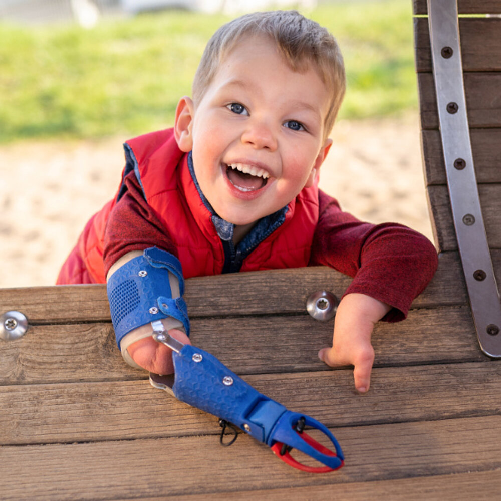 Avec la prothèse FIRST, nous voulons permettre aux enfants souffrant d'une malformation du bras ou d'une amputation du bras de participer à une vie quotidienne adaptée aux enfants, leur ôter leurs craintes.