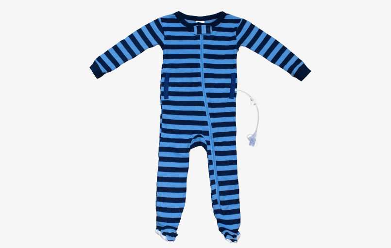 Pyjama avec accès pour sondes d'alimentation ou cathéters pour enfants handicapés.