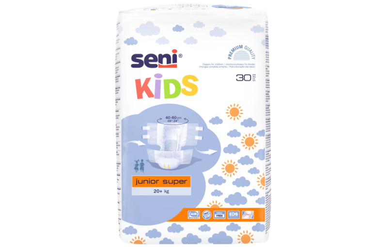 Les couches Seni Kids Junior Extra sont spécialement conçues pour les enfants incontinents qui ont dépassé le stade des couches pour bébés. Elles offrent un matériau doux et respirant pour un grand confort et des fermetures adhésives latérales permettant de les ouvrir et de les fermer plusieurs fois. Le noyau absorbant puissant absorbe rapidement les liquides, empêche les fuites et les odeurs et assure une protection et une sécurité maximales pour que les enfants puissent rester actifs.
