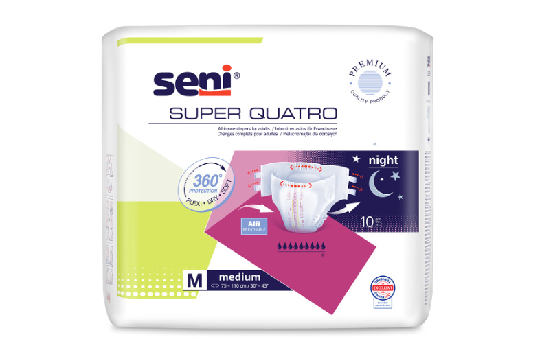 Les culottes d'incontinence Seni Super Quatro offrent une protection éprouvée en cas d'incontinence urinaire et fécale sévère. Grâce à la taille élastique et aux quatre fermetures velcro, elles s'adaptent parfaitement. La protection latérale contre les fuites et la répartition de l'humidité assurent une sécurité fiable.