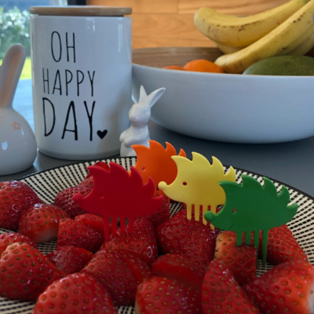 Mein Sohn kann Brotschnitten nicht selber greifen oder zum Mund führen. Mit den Pieksern klappt es deutlich besser! Auch in der Brotdose für die Kita super.