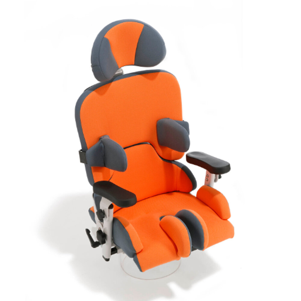 Le système d'assise évolutif offre une profondeur et une largeur d'assise réglables afin de s'adapter à la croissance de l'enfant. L'unité de dossier peut être réglée en angle et en hauteur et est amovible en option. Pour plus de confort, les accoudoirs peuvent être réglés en position et l'appuie-tête est réglable en hauteur, en profondeur et en angle. Les pelotes thoraciques assurent une position assise stable et droite. Le système d'assise est disponible en quatre tailles différentes qui évoluent avec l'enfant. Il peut être adapté à tous les châssis disponibles dans le commerce pour offrir plus de flexibilité. Pour une position assise parfaite, il existe un guide-cuisses qui soutient le mouvement des cuisses vers l'extérieur, et un guide-cuisses abductible est disponible en option.