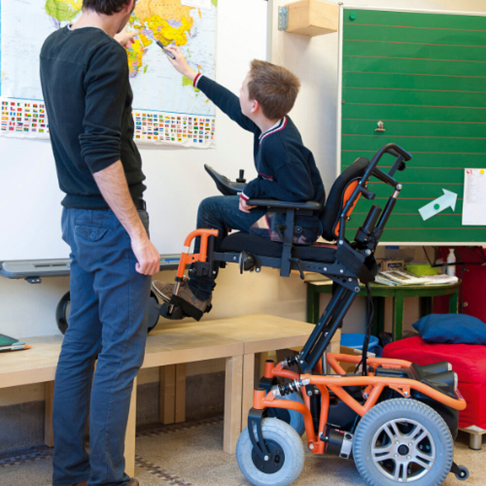 Le fauteuil roulant électrique pour enfants avec fonction de siège élévateur, connu sous le nom de Springer, a été spécialement conçu pour une utilisation en plein air. Ses quatre roues garantissent un contact permanent avec le sol, quelle que soit l'inégalité du terrain. Le Springer maîtrise sans peine des différences de hauteur allant jusqu'à 120 mm, ce qui le rend particulièrement adapté au tout-terrain.