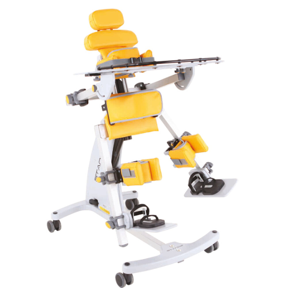 Un système de verticalisation polyvalent qui permet de se tenir couché ou debout et offre un positionnement des jambes en abduction ou neutre pour les enfants âgés de 1 à 9 ans. Inspiré des avantages cliniques de la position debout en abduction et développé en collaboration avec des thérapeutes et des soignants du monde entier, il garantit une combinaison parfaite de positionnement clinique et de facilité d'utilisation.