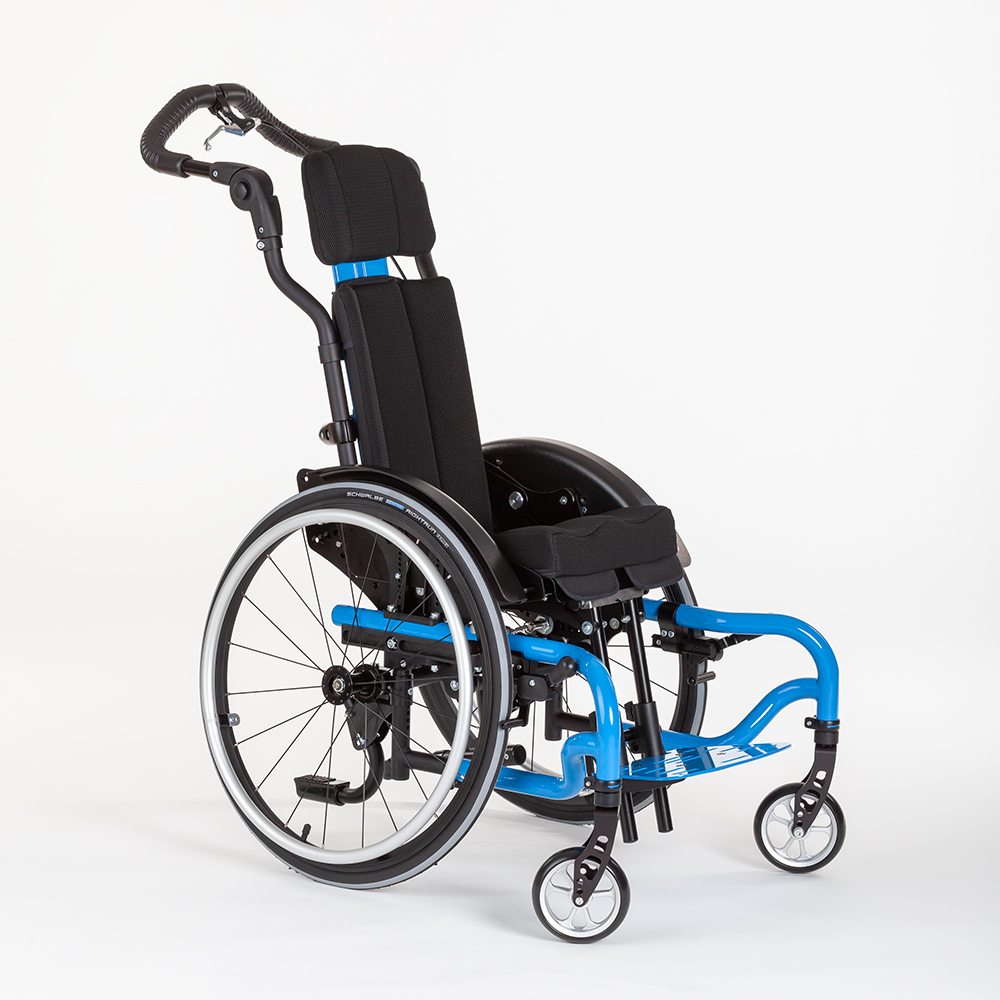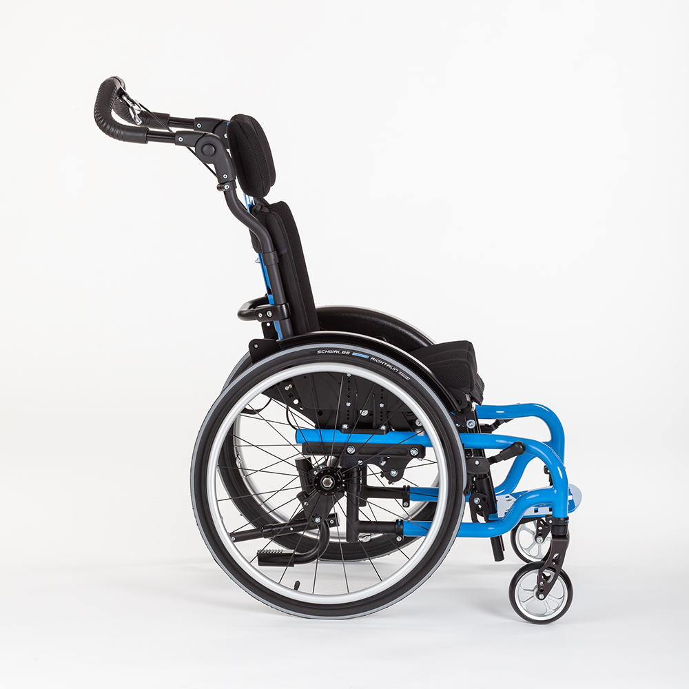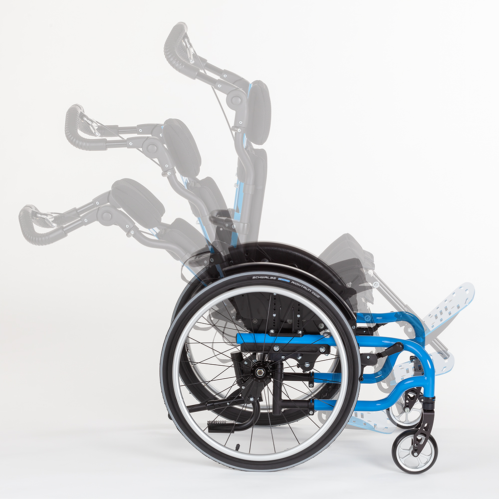 SWINGBO 2 est un fauteuil roulant actif pour enfants et adolescents avec une inclinaison d'assise de 45°. L'inclinaison de l'assise révisée permet un basculement agréable au niveau du centre de gravité. La plage de réglage de l'angle d'assise s'étend de -5° à +45°. Le cadre est spécialement conçu comme variante d'abduction et assure une position assise durablement abaissée.