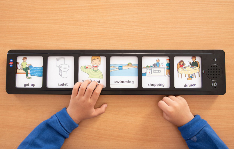 Avec le tableau de narration, les processus sont représentés de manière simple et peuvent être appelés via 6 champs de touches. La planche peut être placée sur un plan de travail ou suspendue. Chaque clavier permet d'enregistrer une image et un son d'une durée de 10 secondes. Il est ainsi possible de raconter des histoires, de créer des emplois du temps ou de présenter des recettes.