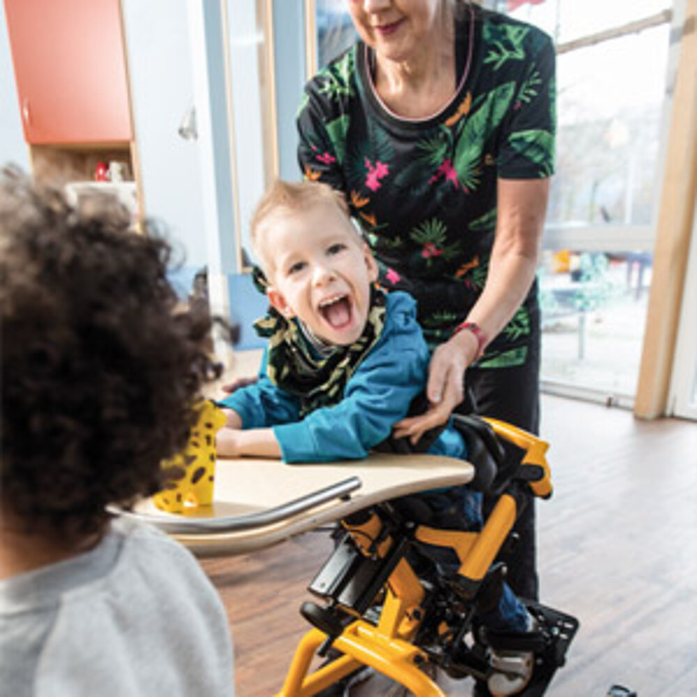 Lena steht mindestens 1 Stunde am Tag im Stehtrainer.