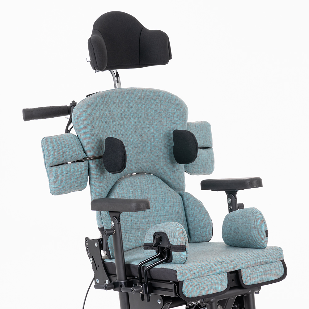 Wir haben seit Ende 2025 den Therapiestuhl Timo von der Firma Hoggi mit anatomisch geformtes Kissen mit Tubermulde nach Körperabdruck im Sonderbau. Somit kann unsere Sohn in ruhigen Momenten auch ohne Begurtung am Tisch sitzen. Wichtig war uns die Höhenverstellung um ihm die Teilhabe am Kochen zu ermöglichen. Außerdem ist unser Sohn der Kaffeebeauftragte. Er liebt es unseren Vollautomaten zu bedienen. Das hätte er in dem vorherigen Therapiestuhl (Smilla) nicht gekonnt. Die Kantelung wir benötigt, falls er im Stuhl einschläft. Die Kopfstütze haben wir auch durch eine aus dem Sonderbau ersetzt. Unser Sohn war bei der originalen Kopfstütze im seitlichen Sichtbereich eingeschränkt.