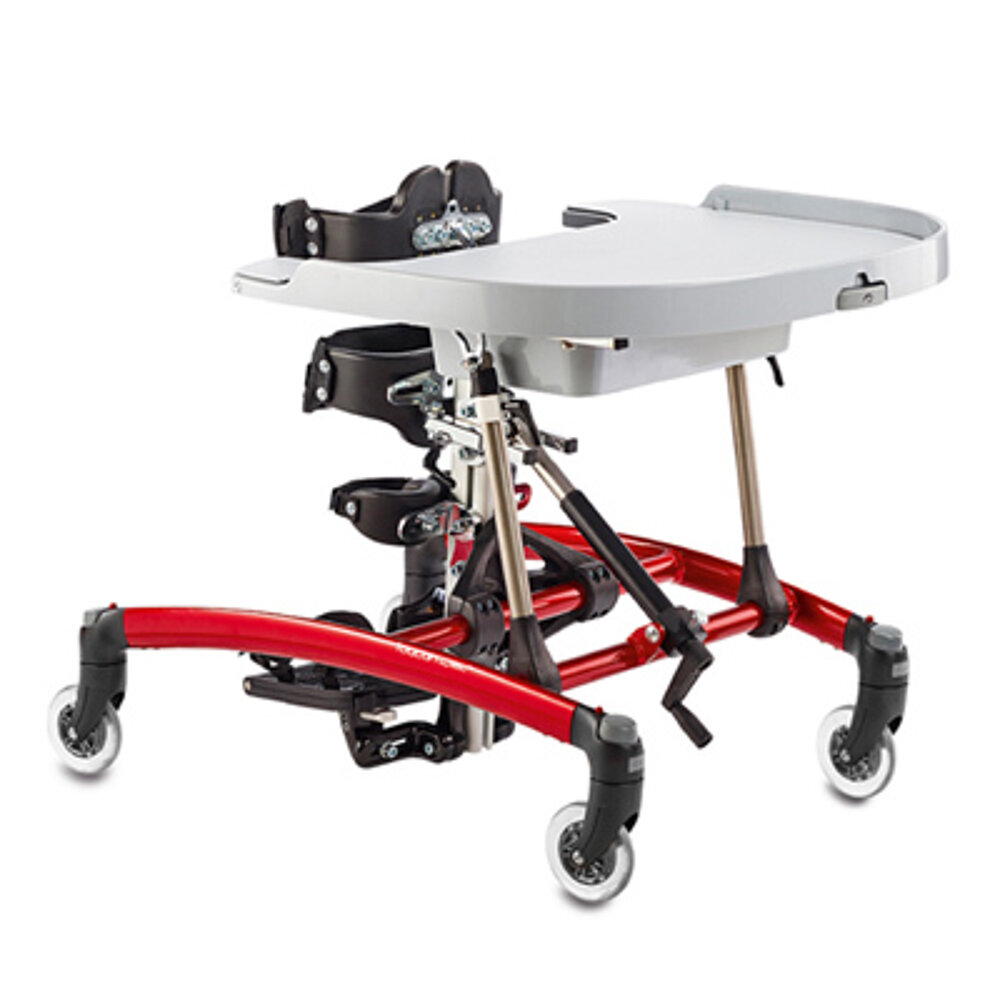 Le Toucan est un appareil d'entraînement debout mobile avec un réglage d'inclinaison de 30° en position ventrale. Il se distingue par son design attrayant aux lignes légèrement courbées et aux couleurs audacieuses. Le Toucan permet aux enfants et aux adolescents de se tenir debout en position verticale et ventrale, tout en offrant un soutien fiable. Grâce à l'espace généreux entre les entretoises latérales du cadre, le Toucan s'adapte à presque tous les fauteuils roulants et systèmes d'assise fixes. Cela permet un transfert facile de l'utilisateur du fauteuil roulant vers le Toucan.