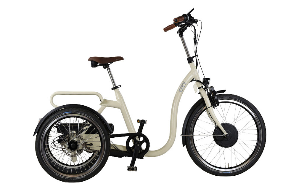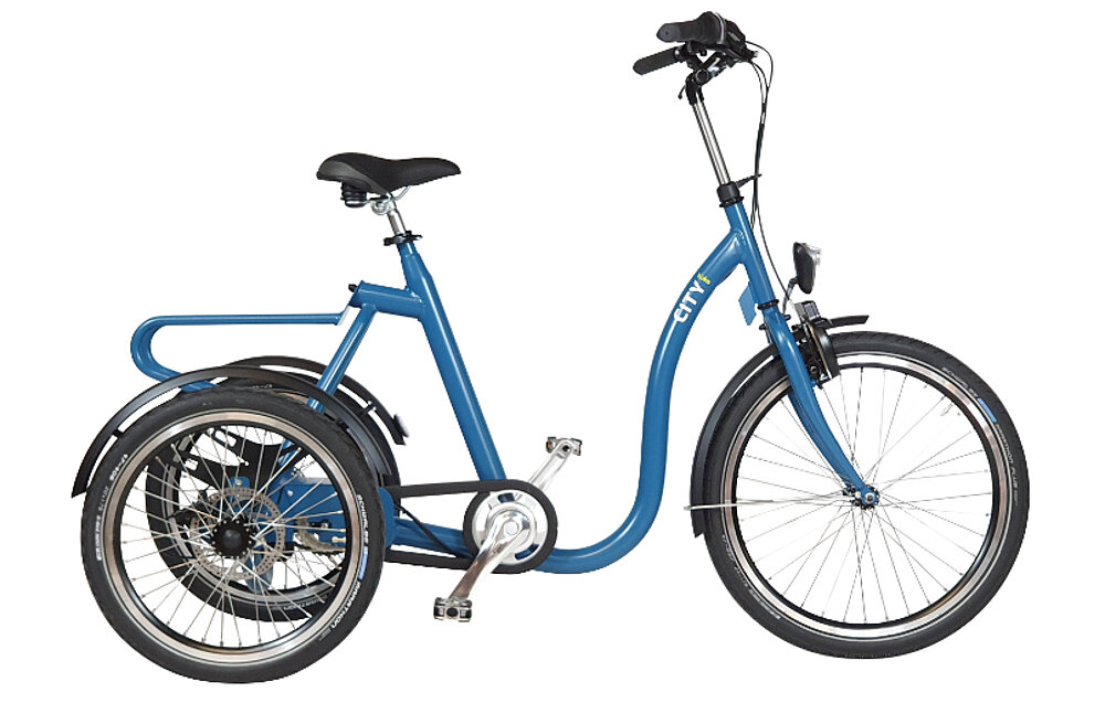 La grande capacité de réglage de la selle et les deux tailles disponibles (M et L) permettent d'obtenir une position assise optimale qui plaît au plus grand nombre. Une hauteur d'accès particulièrement basse (19 cm) facilite la montée et la descente, surtout pour ceux qui ne veulent pas se fier entièrement à leur équilibre. De plus, ce tricycle peut être personnalisé et livré dans votre couleur RAL préférée. Le Citybike est disponible en standard en gris clair mat ou en bleu azur mat.