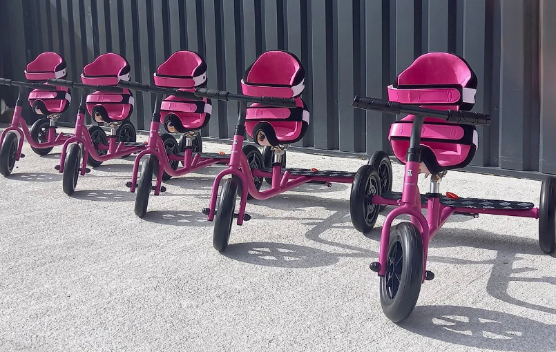 Le Triskelo est un tricycle d'apprentissage de la mobilité avec une selle-corset sur mesure. Le bassin de selle anatomique permet à l'enfant de marcher de manière autonome, ce qui fait du Triskelo un outil thérapeutique idéal et un compagnon idéal pour les sorties en famille.